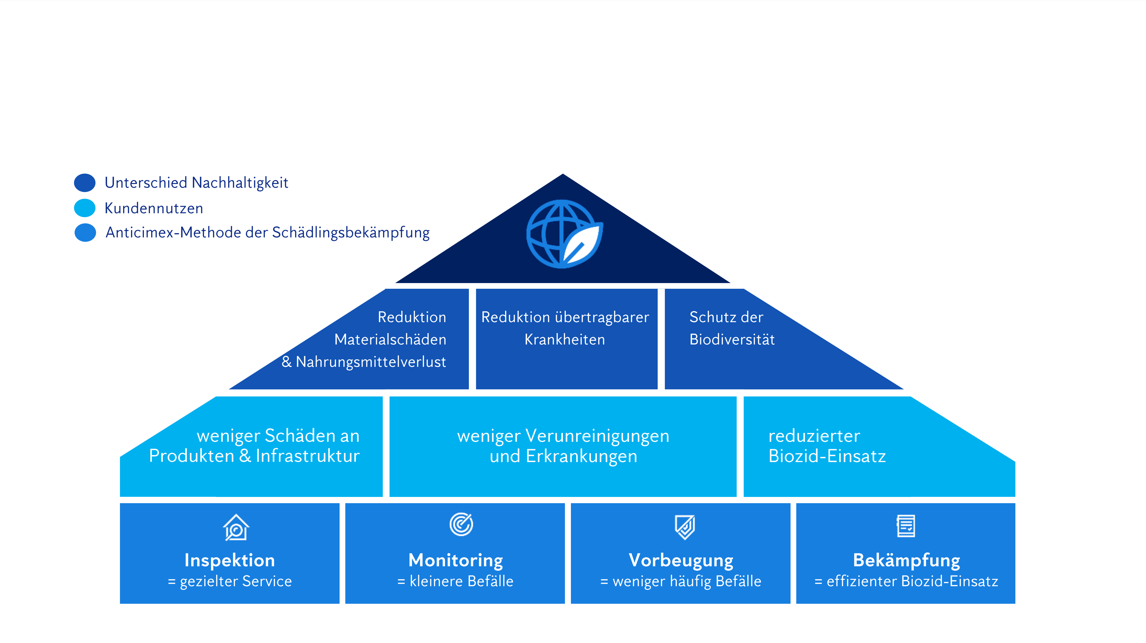 Unsere Lösungen und Methoden sind die Zukunft der Schädlingsbekämpfung, weil sie mit Hilfe kontinuierlicher Innovation diese von einer reaktiven zu einer präventiven Intervention mit möglichst geringem Mitteleinsatz und maximaler Nachhaltigkeit transformieren.