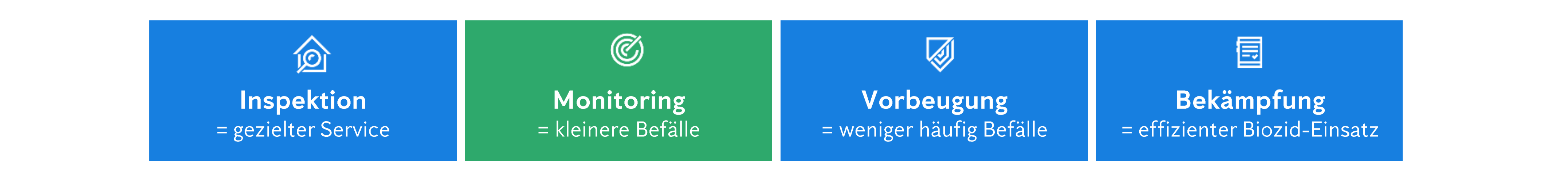 Das Aufzeichnen qualitativ hochwertiger und relevanter Daten während des Monitorings ist ausschlaggebend dafür, dass unsere Schädlingsbekämpfer mit fundierter Datenlage wirksame Entscheidungen darüber treffen können, welche Bekämpfungsmassnahmen, wo, wann und wie vorgenommen werden, um die Schädlinge mit möglichst kleiner Intervention effizient und effektiv zu kontrollieren.